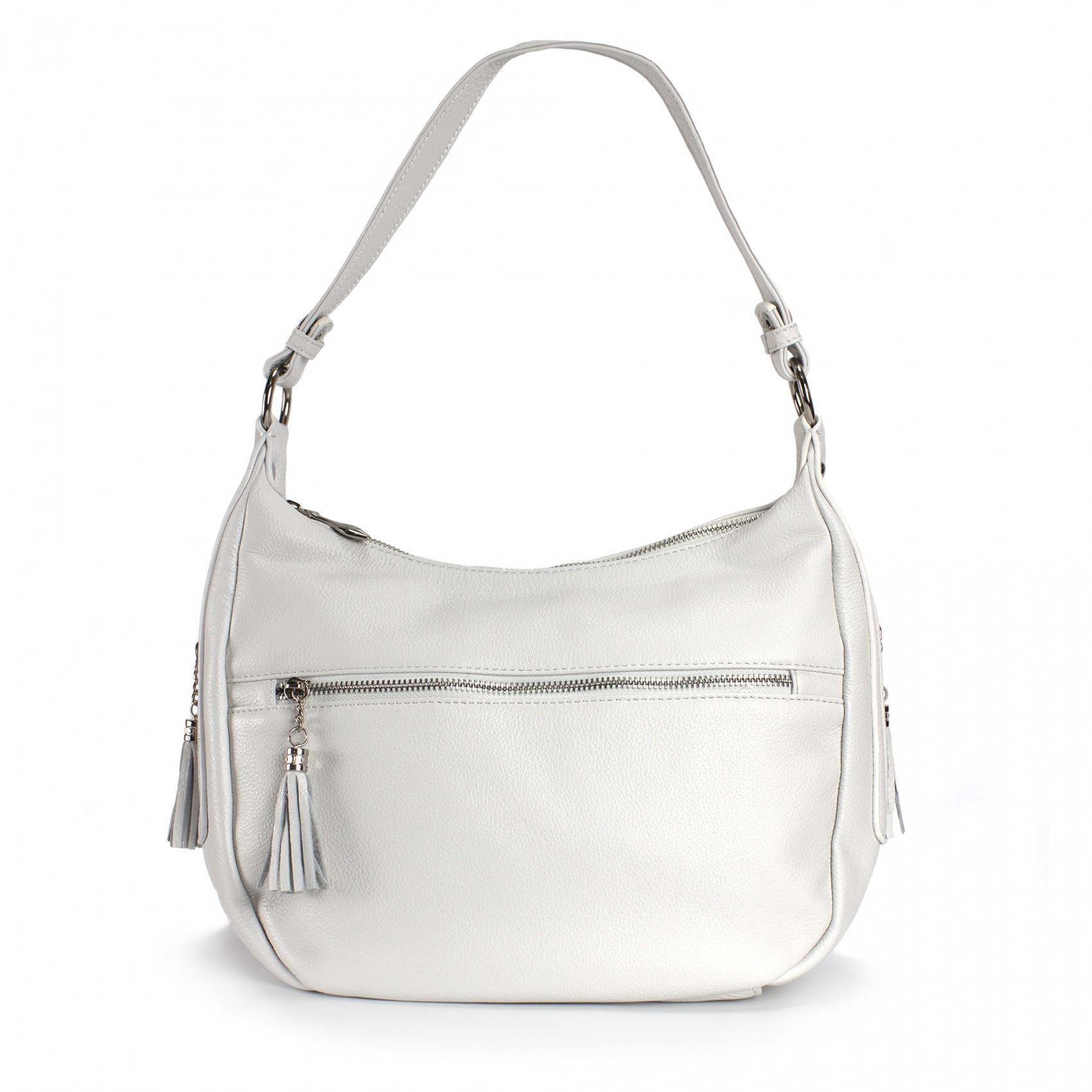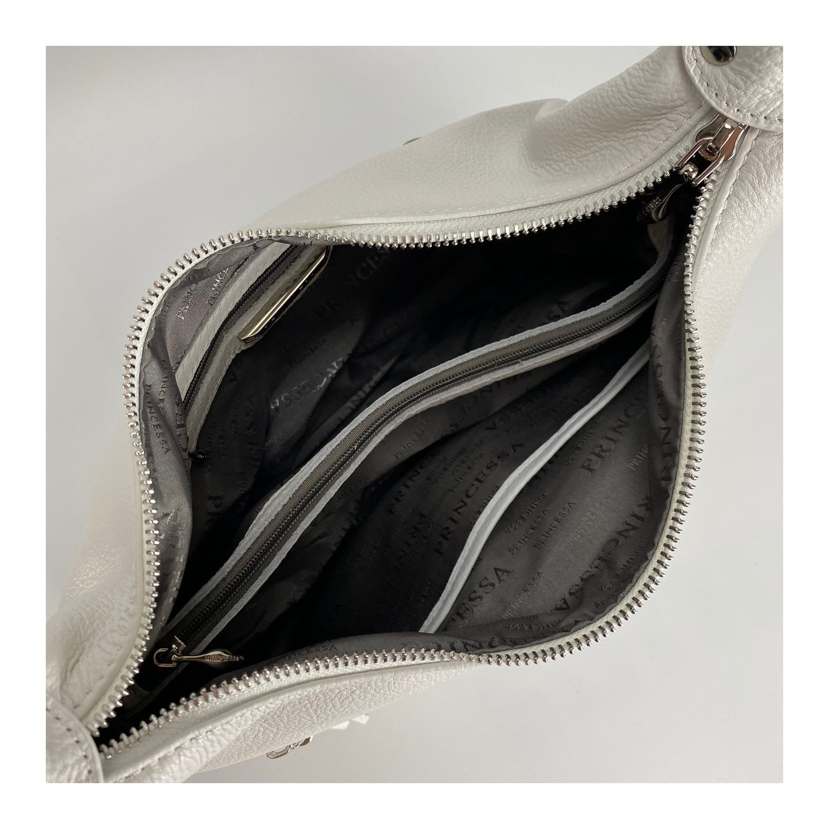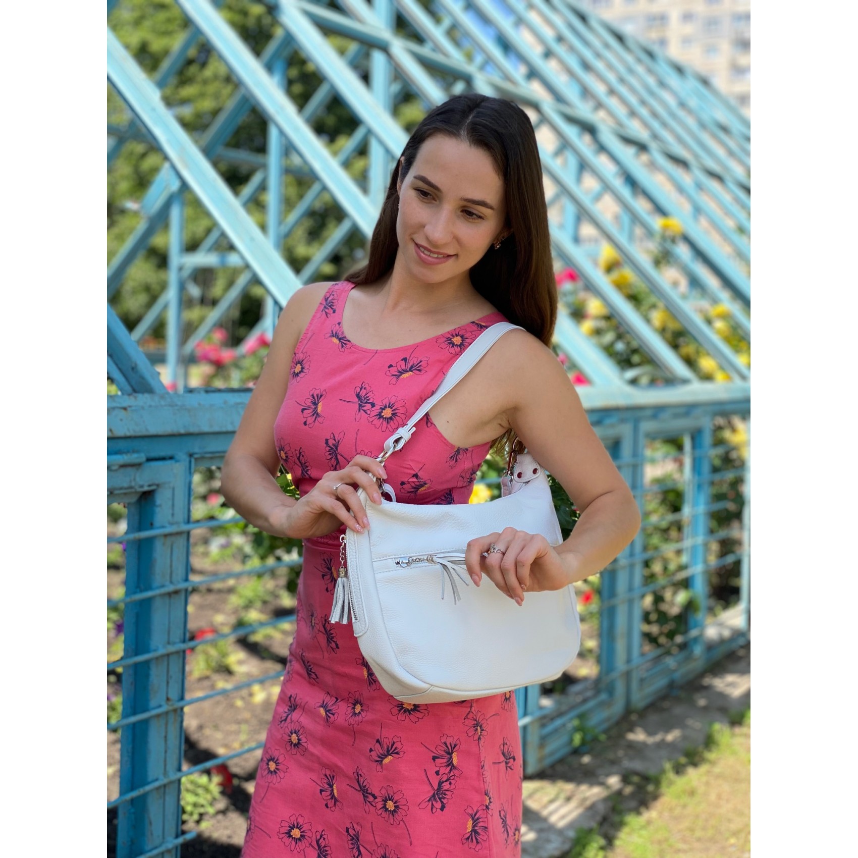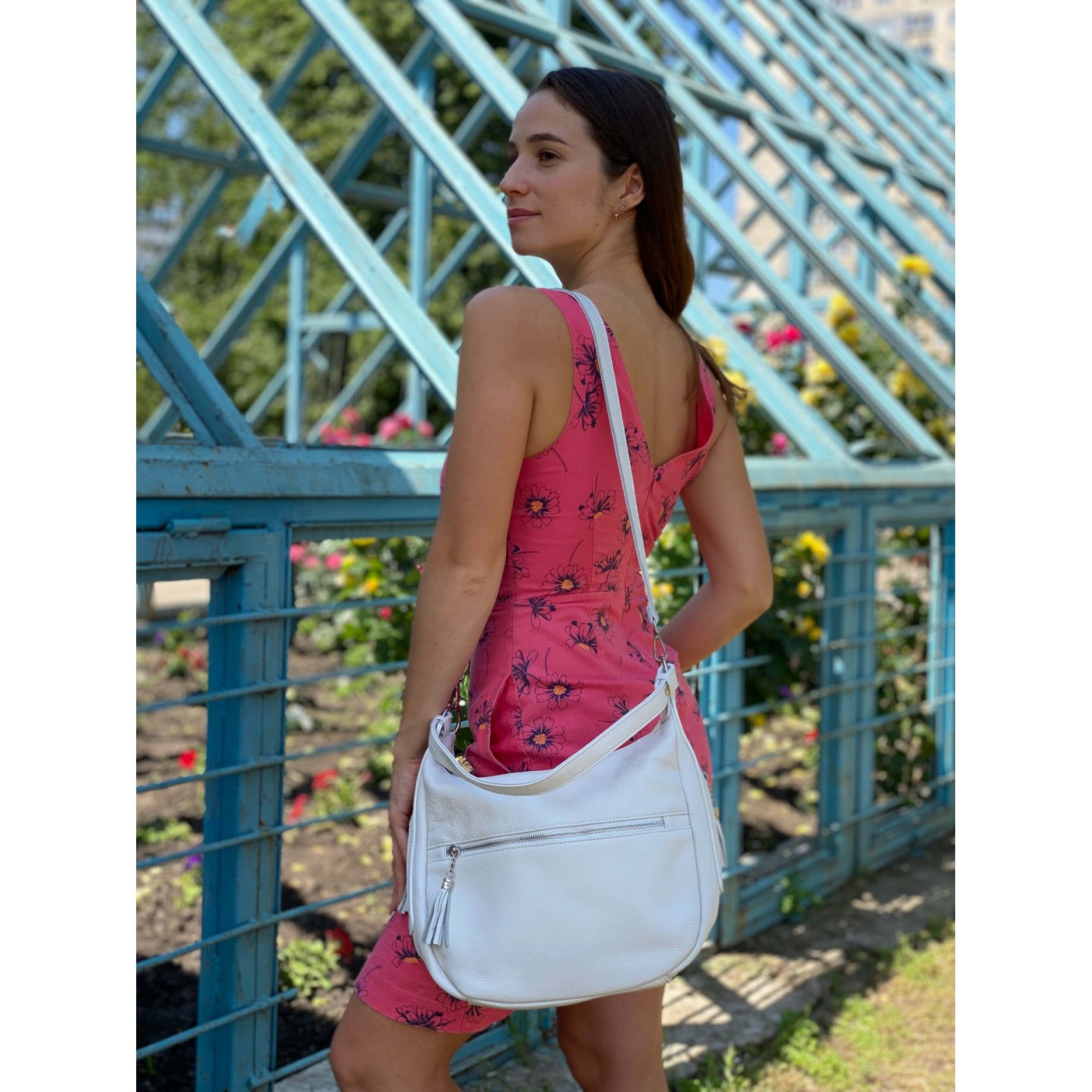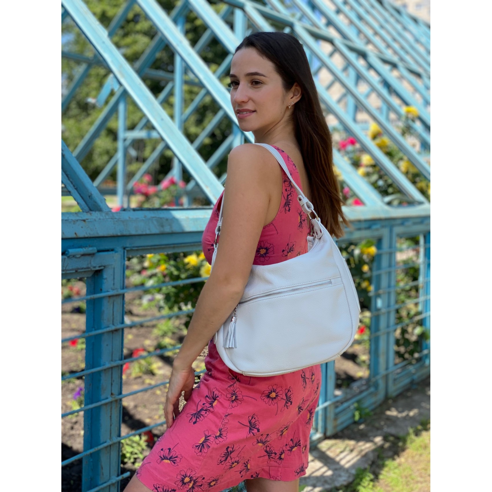 Женская кожаная сумка-хобо Linda в белом цвете подарит вашему образу непринужденную роскошь и стиль.