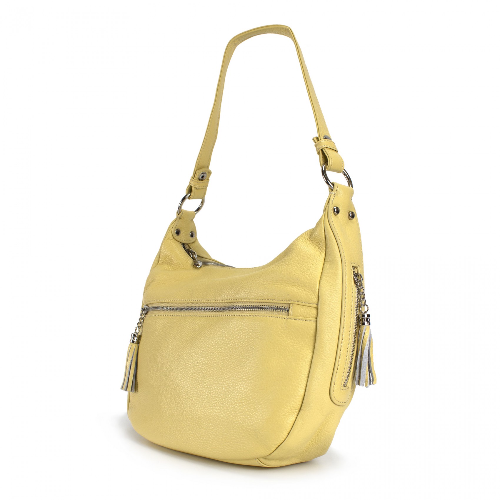 Яркая, как луч солнца, женская кожаная сумка-хобо Linda в сочном желтом цвете подарит вашему образу непринужденную роскошь и стиль. Ее сияющая поверхность словно улавливает каждый луч света, подчеркивая вашу уникальность и смелость.