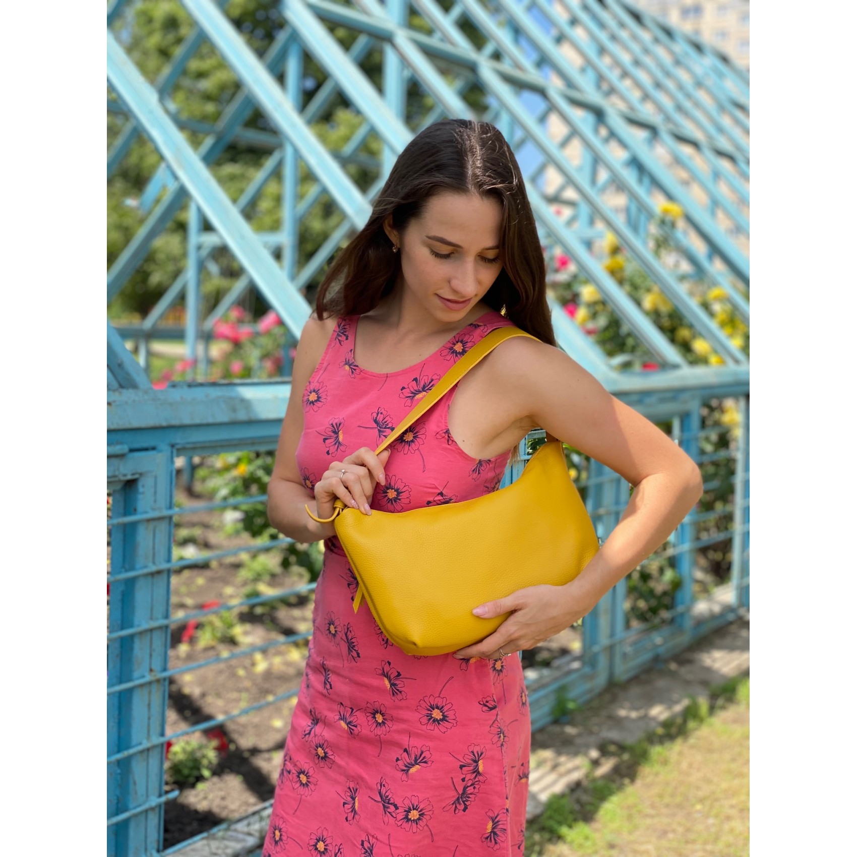 Женская кожаная сумка хобо Monica в желтом оттенке - это совершенное сочетание изысканности и комфорта. Ее натуральная кожа нежно обнимает ваши руки, принося радость и удовлетворение при каждом касании.