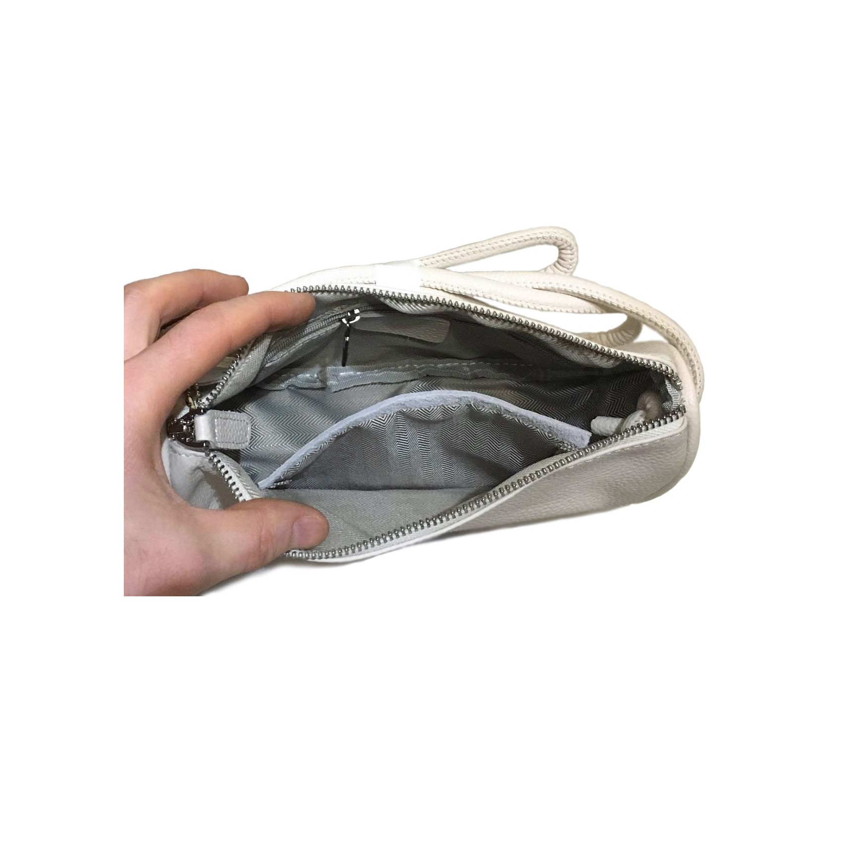 Добро пожаловать в мир элегантности с женской кожаной сумкой "Megan" в кремовом цвете. Она закрывается на молнию и внутри имеет два кармана для мелочей. С длинным регулируемым ремешком, она придаст вам непревзойденный стиль и удобство. "Megan" — идеальный выбор для вашего яркого образа