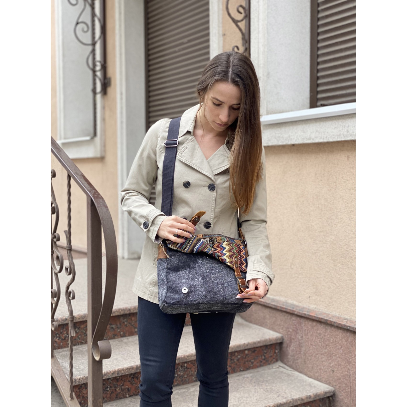 Сумка Aeon с орнаментом - олицетворение стиля и практичности. Великолепный графитовый оттенок с эффектным декоративным узором и фальш ремешками придают этой сумке особый шарм. Закрывается на надежные кнопки-магниты, что делает использование её простым и удобным. Внутри вы найдете много функциональных карманов для хранения ваших вещей в порядке. Надёжные вставки из натуральной кожи добавляют качества и долговечности. Она готова подчеркнуть ваш стиль и стать верным спутником в повседневных делах.