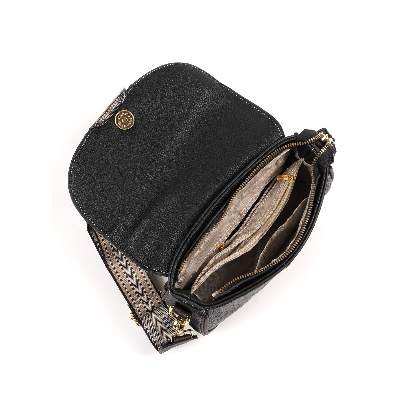 Сумка-кроссбоди Elodie — это элегантное сочетание стиля и функциональности в насыщенном черном цвете. Верхняя часть надёжно фиксируется на магнитные кнопки, а внутреннее отделение закрывается молнией, обеспечивая сохранность ваших вещей. Внутри продумано всё до мелочей: вместительный карман на молнии, карман-перегородка для удобной организации и отдельный отсек для мелочей.