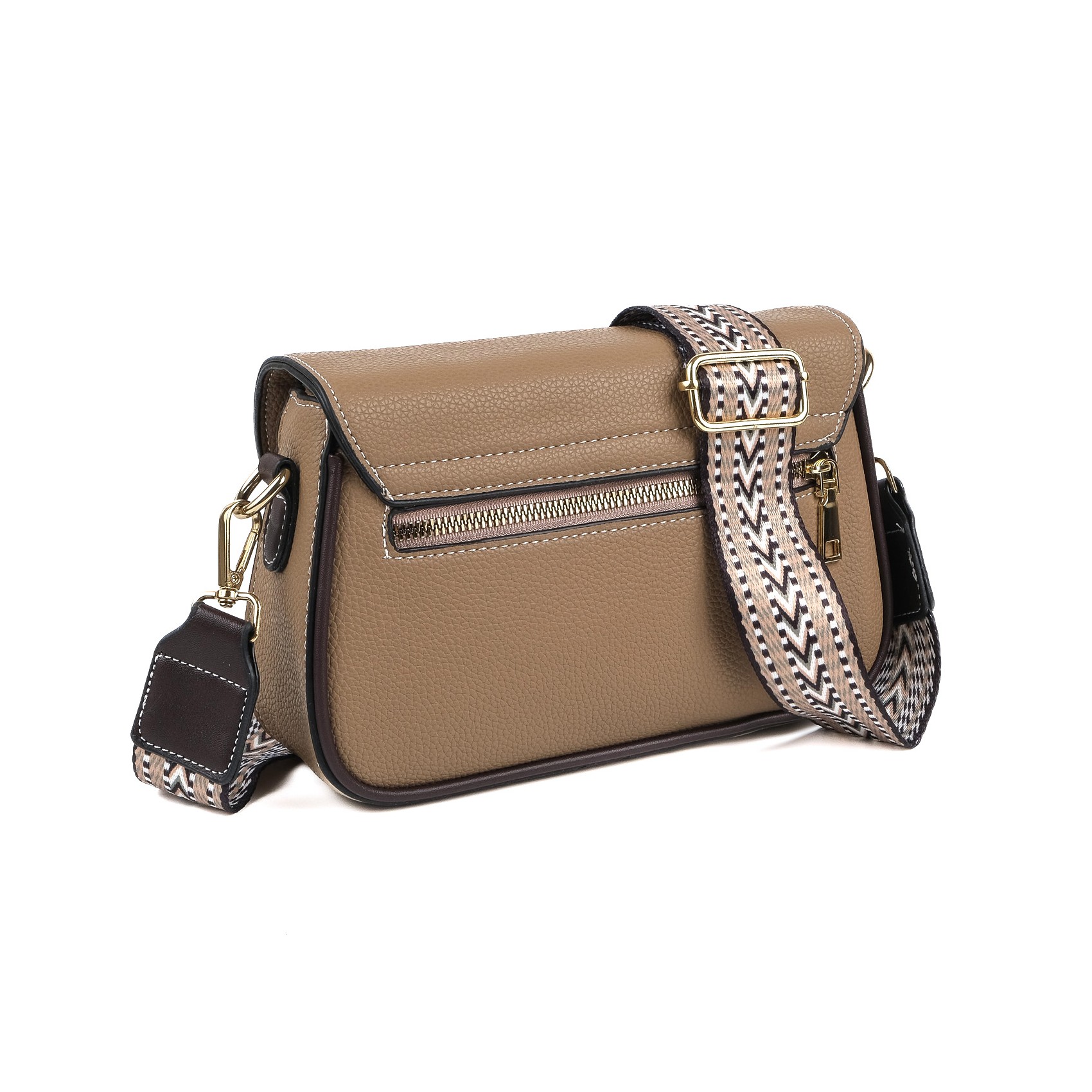 С обратной стороны расположен дополнительный внешний карман на молнии — идеален для телефона или ключей. В комплекте два съёмных ремешка: широкий тканевый для повседневной носки и узкий — для более утончённого образа. Сумка выполнена из приятной на ощупь и износостойкой экокожи.