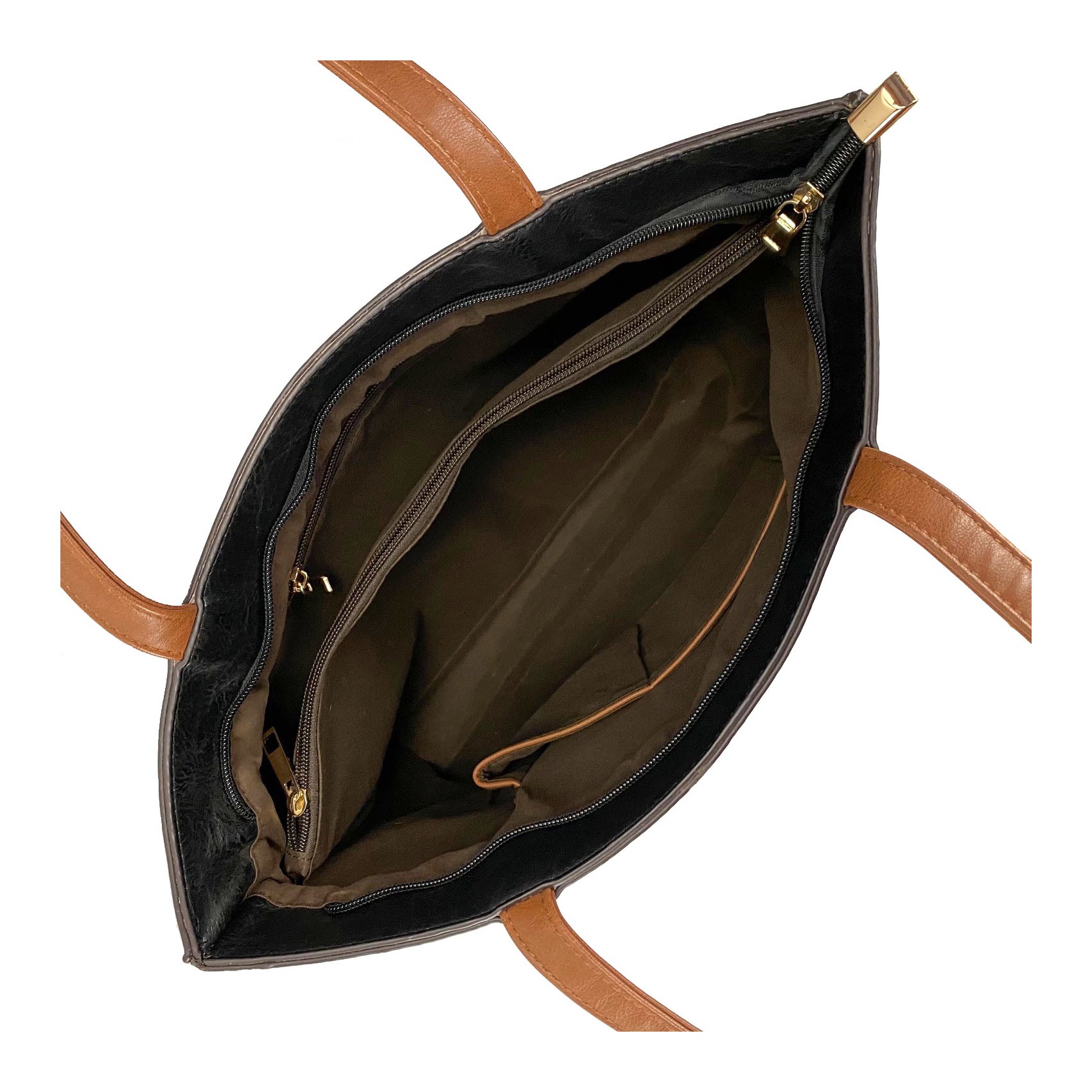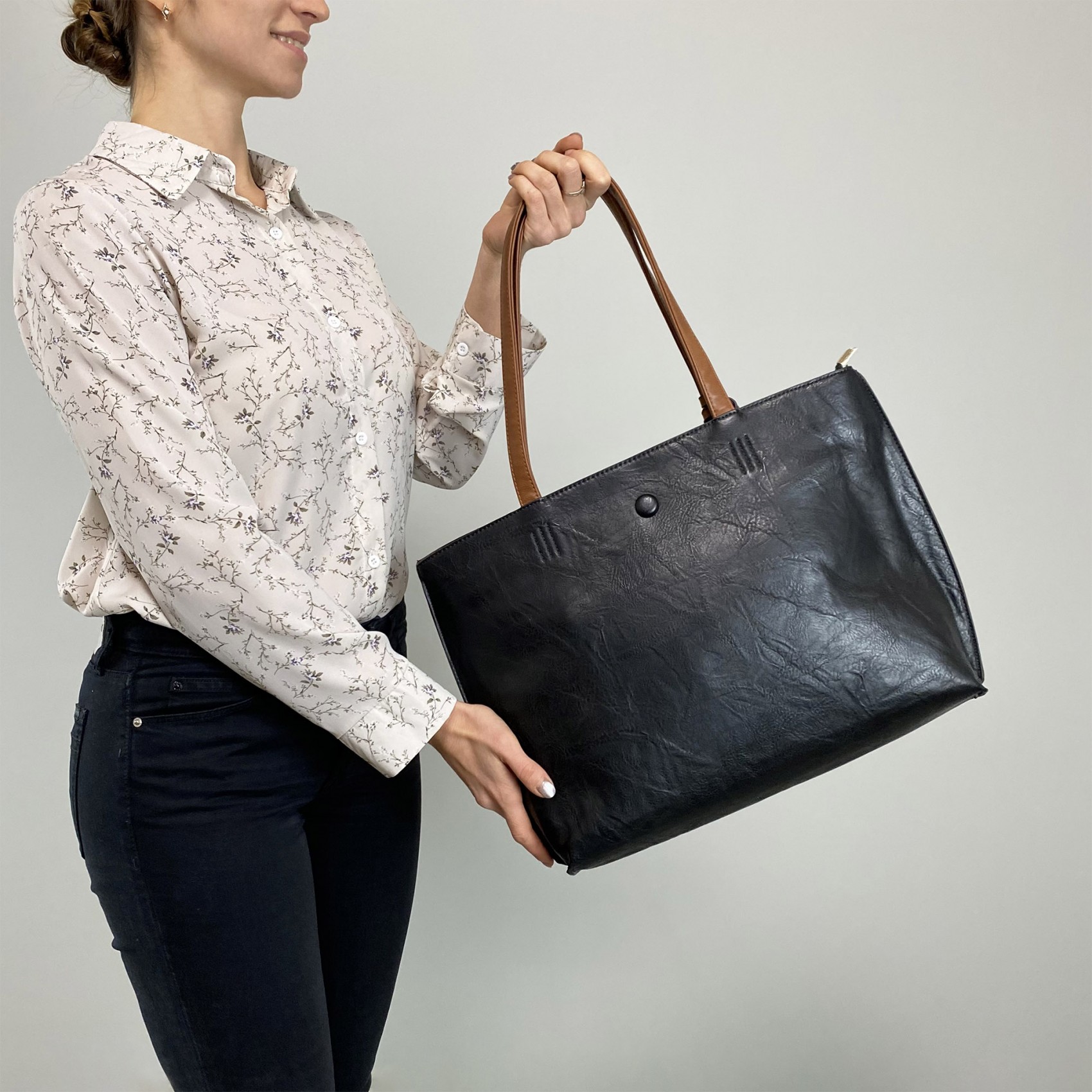 Сумка с легкостью закрывается на молнии, защищая все ваши ценности. Внутри сумки удобно размещены карманы на молнии, позволяя хранить вещи организованно и удобно. На обратной стороне вы найдёте ещё один удобный карман. Носите эту сумку с комфортом, благодаря длинным ручкам, позволяющим носить её на плече или в руках. А в комплекте с сумкой вы получите маленький кошелек, который станет незаменимым спутником для мелочи. Сумка Karen - ваш стильный аксессуар для повседневной жизни.