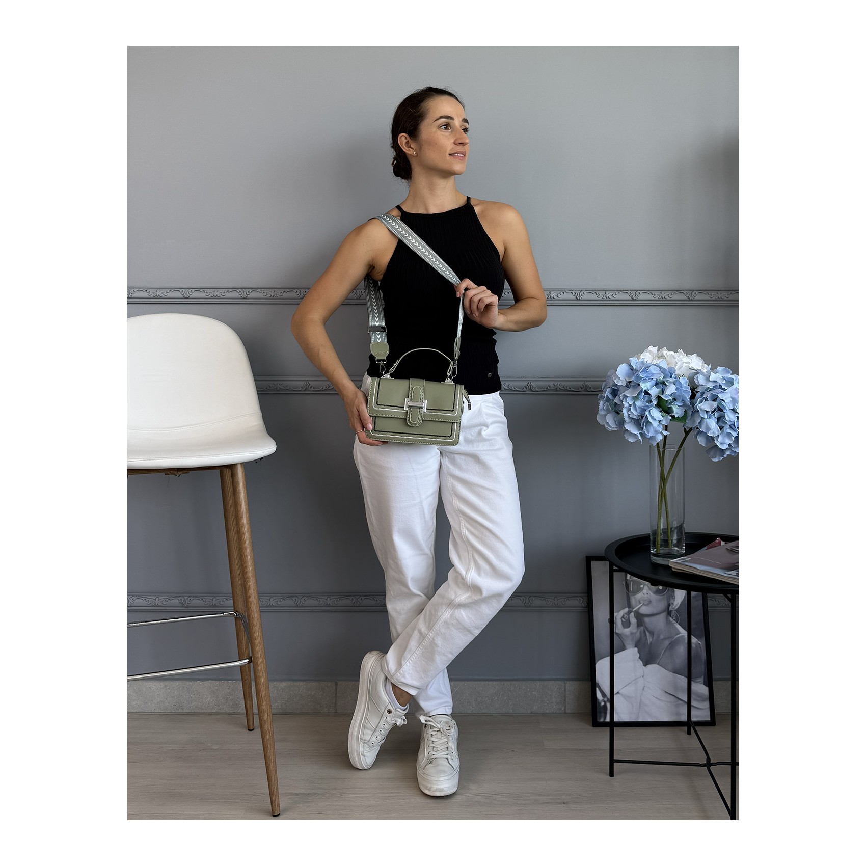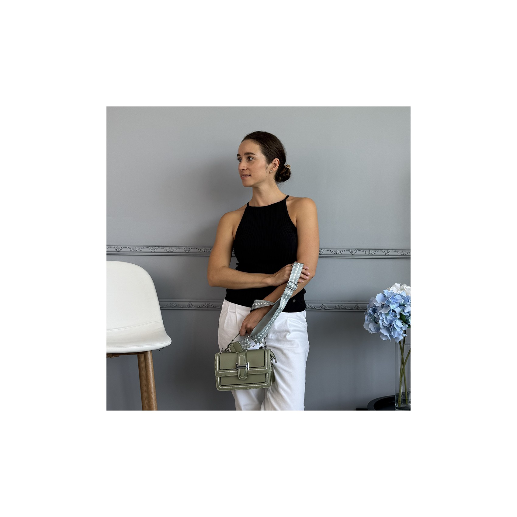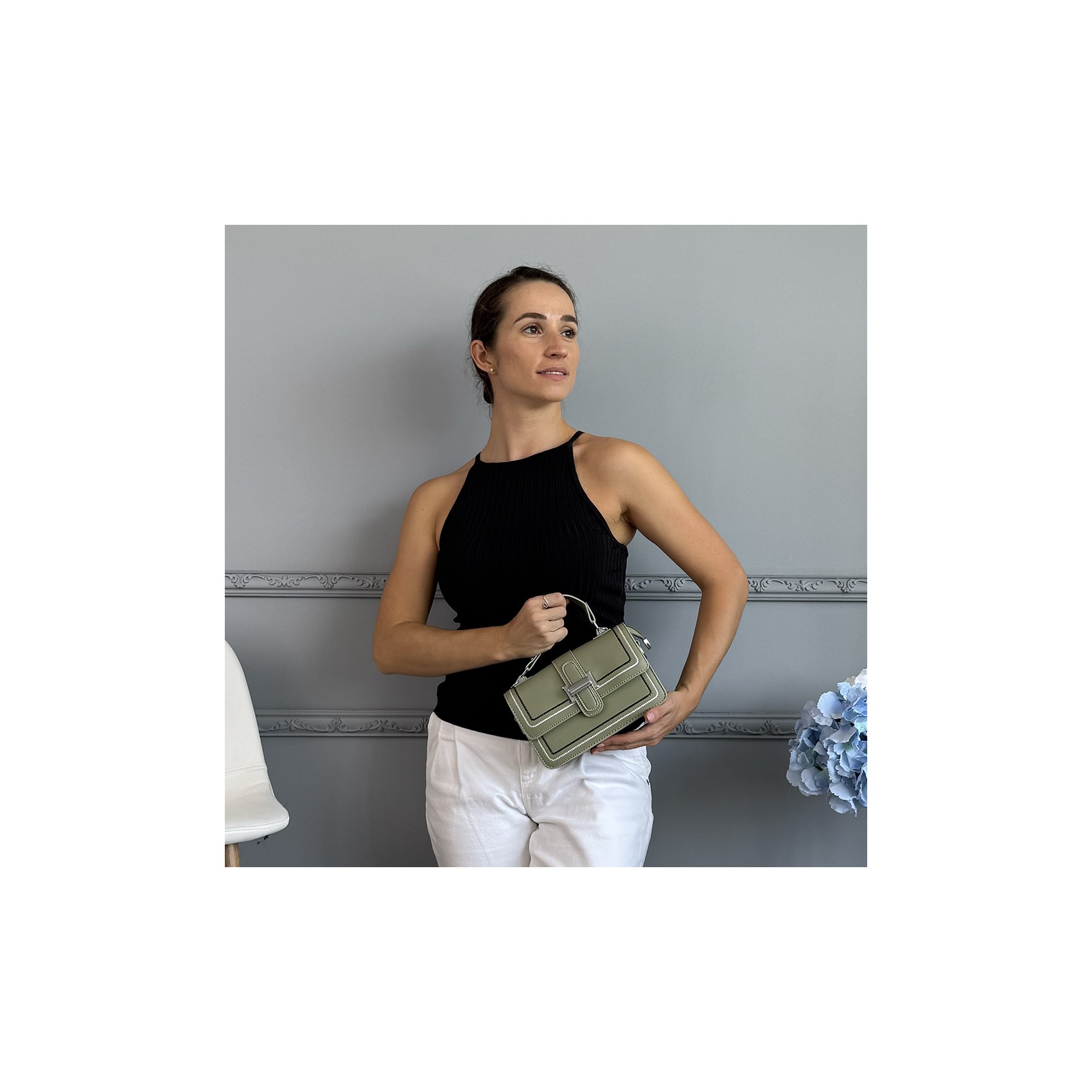 Элегантная и функциональная женская сумка через плечо Corinne создана для тех, кто ценит стиль и практичность в каждой детали. Изготовленная из гладкой кожи фисташкового цвета, она притягивает взгляды мягким оттенком и изысканным дизайном. Центральная декоративная застёжка добавляет образу акцент, подчёркивая утончённый вкус владелицы.