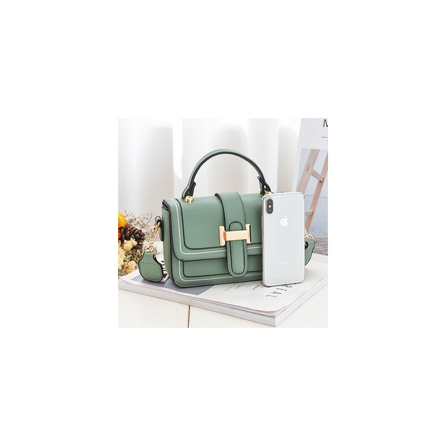 Сумка через плечо Melissa — это идеальное сочетание стиля и функциональности, которое подчеркивает вашу индивидуальность. Мятный цвет сумки привлекает внимание и добавляет вашему образу свежести и оригинальности. Магнитные кнопки позволяют легко и быстро закрывать сумку, при этом декоративная застежка по центру добавляет изысканности и шарма.